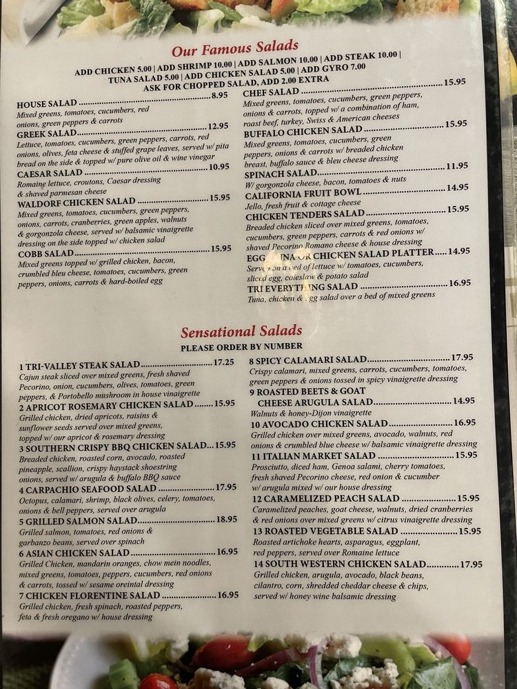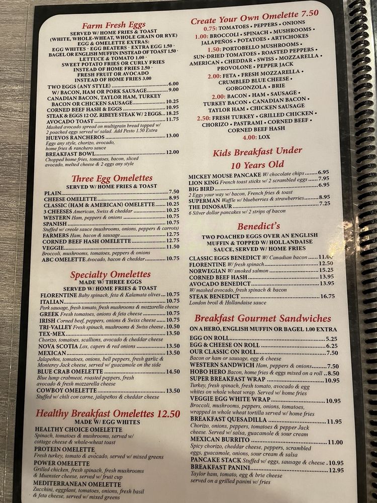Introducing Tri-Valley, an American restaurant located in Dumont, NJ. This casual eatery offers a wide range of menu options perfect for breakfast, brunch, lunch, dinner, and dessert. From classic egg omelettes like the ABC Omelette with avocado, bacon, and cheddar to specialty omelettes like the Blue Crab Omelette, Tri-Valley caters to all tastes. Their farm-fresh eggs dishes such as the Avocado Toast or Breakfast Bowl are a must-try. The restaurant also provides many vegetarian options and is accommodating for groups, kids, and offers catering services. With free Wi-Fi, outdoor seating, and a diverse menu, Tri-Valley is a great spot for a delicious meal with friends and family.